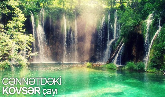 Allahın Rəsulu Məhəmməd Peyğəmbər Kövsər çayı və Tuba ağacı haqqında belə buyurur:-Qadir Allah Cənnətdəki Kövsər çayını mənim üçün yaradıb.Quranda bu haqda belə yazılıb:(Ya Peyğəmbər!)Həqiqətən Biz sənə Kövsər bəxş etdik(Quran.108:1)