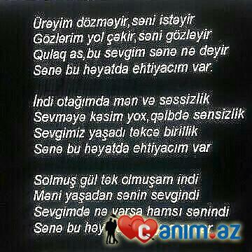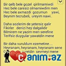 [b] Həyat Səni qarşima çixaracaqmiş Ən çətin kədərli anlarimda Qəlbim Səninlə təsəlli tapacaqmiş Sən gəldin Ömrümə zamaninda Nəfəsinlə isitdin donmuş qəlbimi Baxişinla Ömrümə nur çi