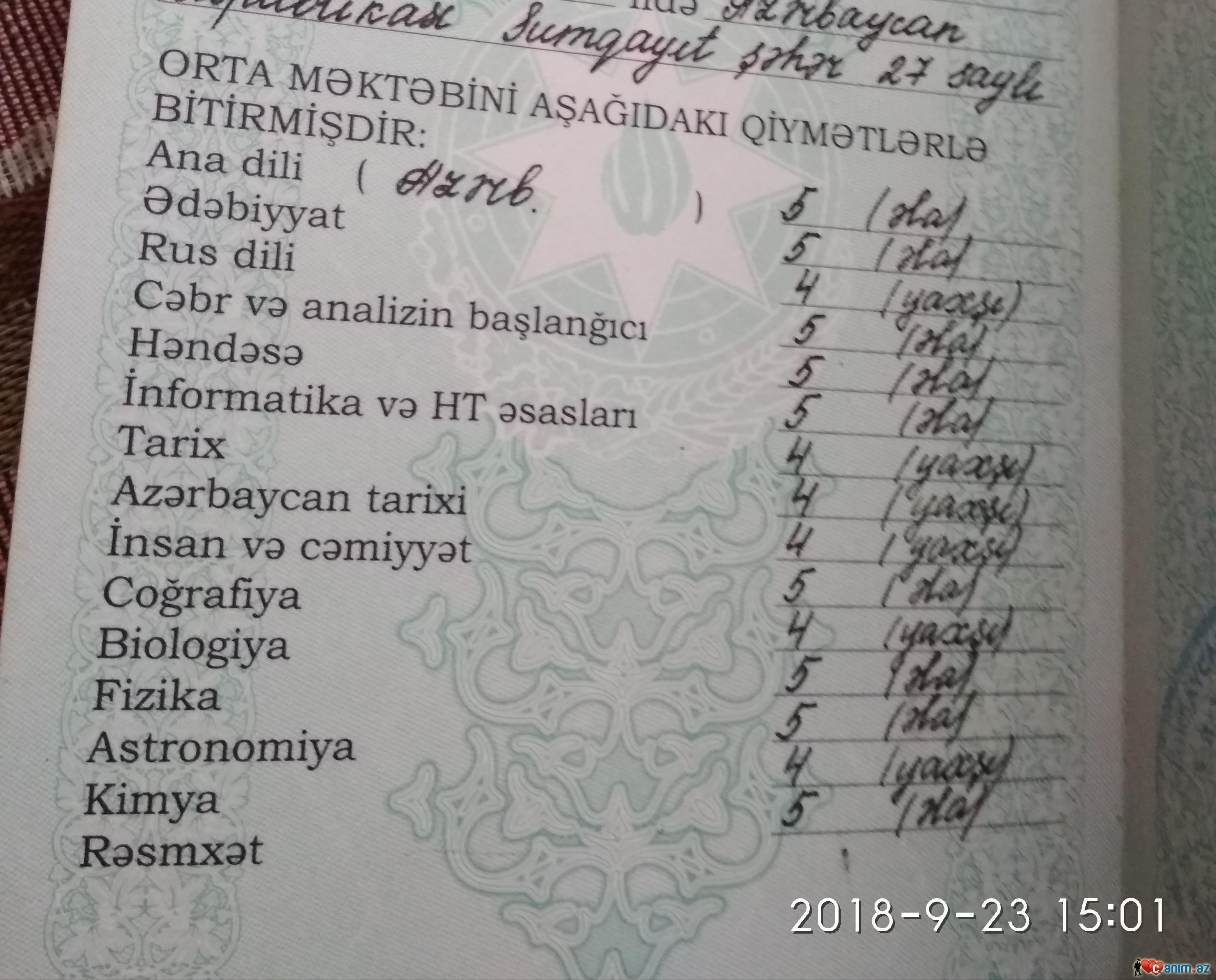 Yaxsi baxin,bele attesstat beke bir de gormediniz)))