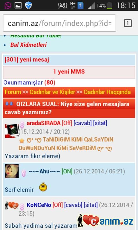 QIZLARA SUAL: Niye size gelen mesajlara cavab yazmırsız?