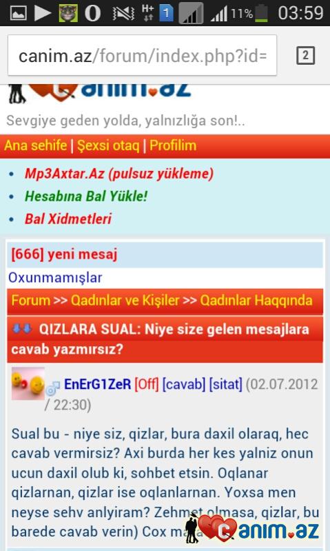 Mövzudakı loadlar: QIZLARA SUAL: Niye size gelen mesajlara cavab yazmırsız?
