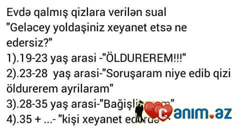 Qadin bagiwliya biler,mence! . . . Ama mecburi deyil ! ! ! Cunki,oglan xeyanet elemegnen lekelenmir axi ! . . . Ama onu da diyim ki,oglan bezende xeyanet eliyir,her wey superdise duwunceli oglan xeyan