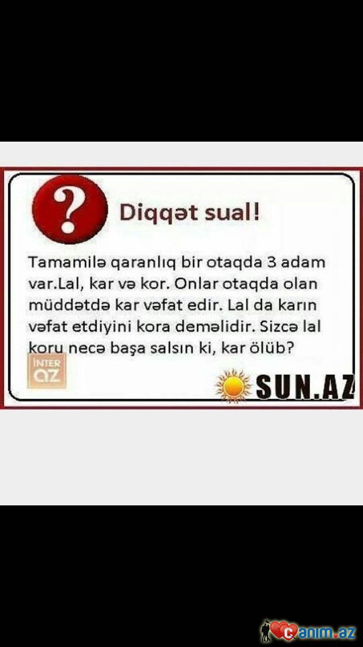 NoreN (04.02.2016/12:42)men sade sual verirem yixayiram cetin versem heftelerle fikirlesersiz)))