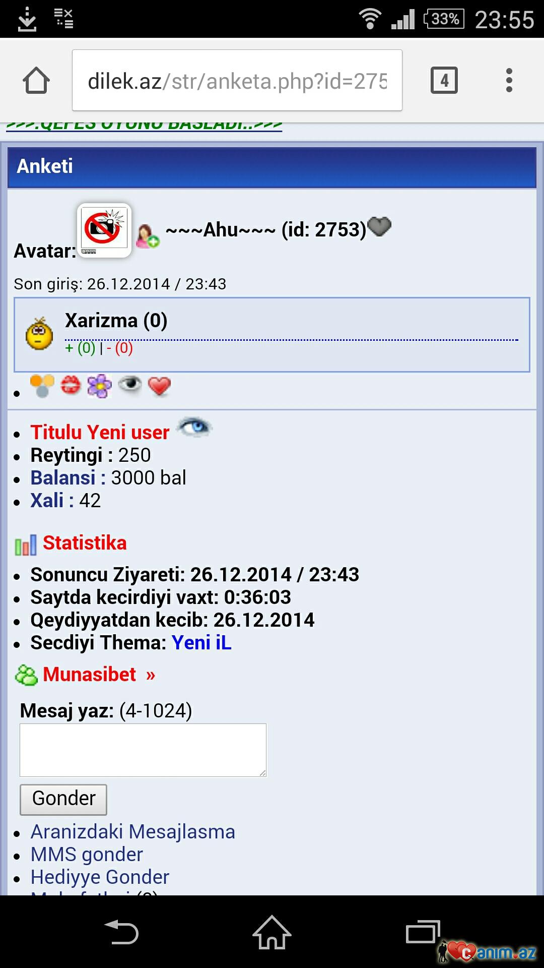 ~~~Ahu~~~ (25.12.2014/02:25)Az yeri birdan. OZU DE YAZIVIN TONUN QALDIRMA!!!