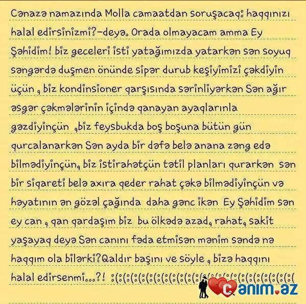 “Mən hazırda “N” saylı hərbi hissədə xidmət edirəm. Saytlarda şəkillərim yayılıb, amma şəhid olan əsgər Səftər Məmmədov mən deyiləm. Xahiş edirəm, bu məlumatlar saytlardan silinsin. Ailəm də, yaxınlarım da mənə görə narahatdır. Çox xahiş edirəm, məlumat saytlardan çıxarılsın”.