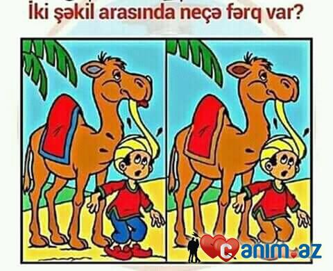 1 budaq2 palanin rengi3 devenin qulaq rengi4 şalvar rengi5 bawinin uste olan damcilar6 devenin dili7 ayaqqqabi rengi8 yerin formasi.