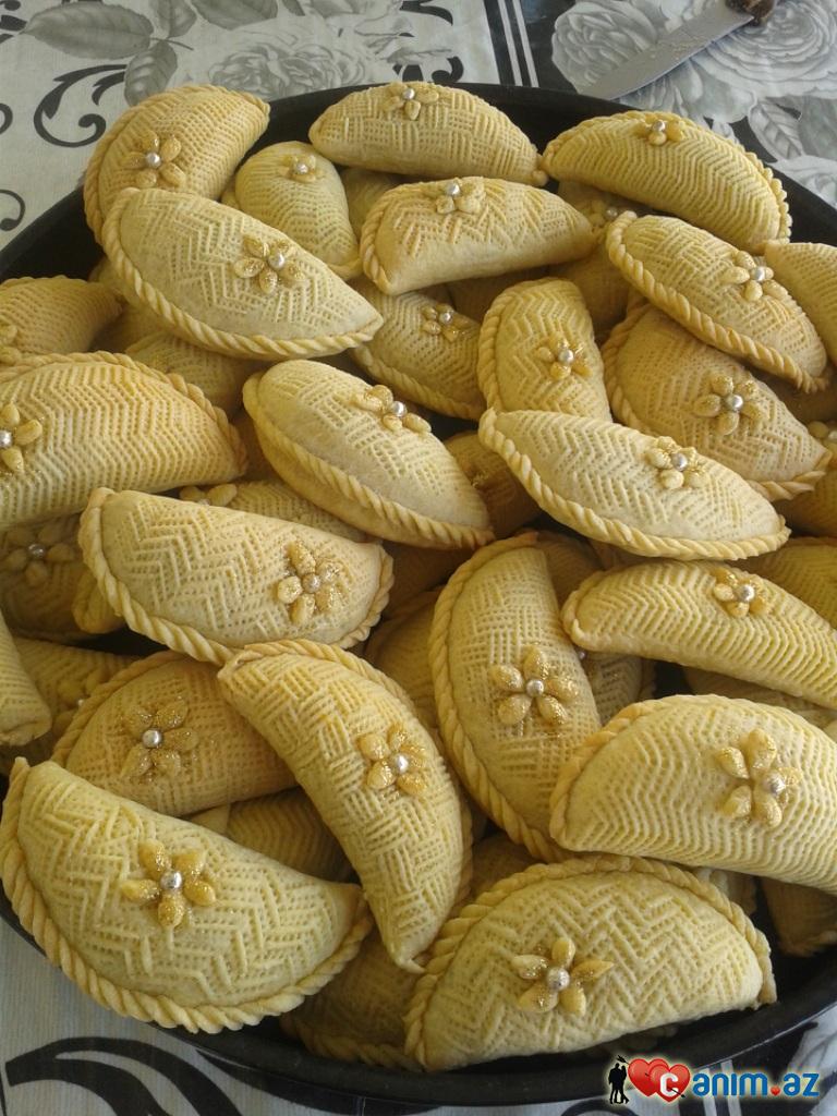 Unu yagla doyun qum zerresi alinanadek(kic olmasin)sonra xama,yumurta sarisini elave edib xemir yogurun 4kunde edib buzluga qoyun seheri bisirmeye baslayin. Xemir soyuducuda saxlanir bir bir cixarilib bisirilir. 60qr kundelere bolun xrmirin hamisindan 50sekerbura alinir. Kundeleri yayin kofe nelbekisi boyda ic qoyub vintvari bukun naxislayib bisirin))uzeri qizarmamali