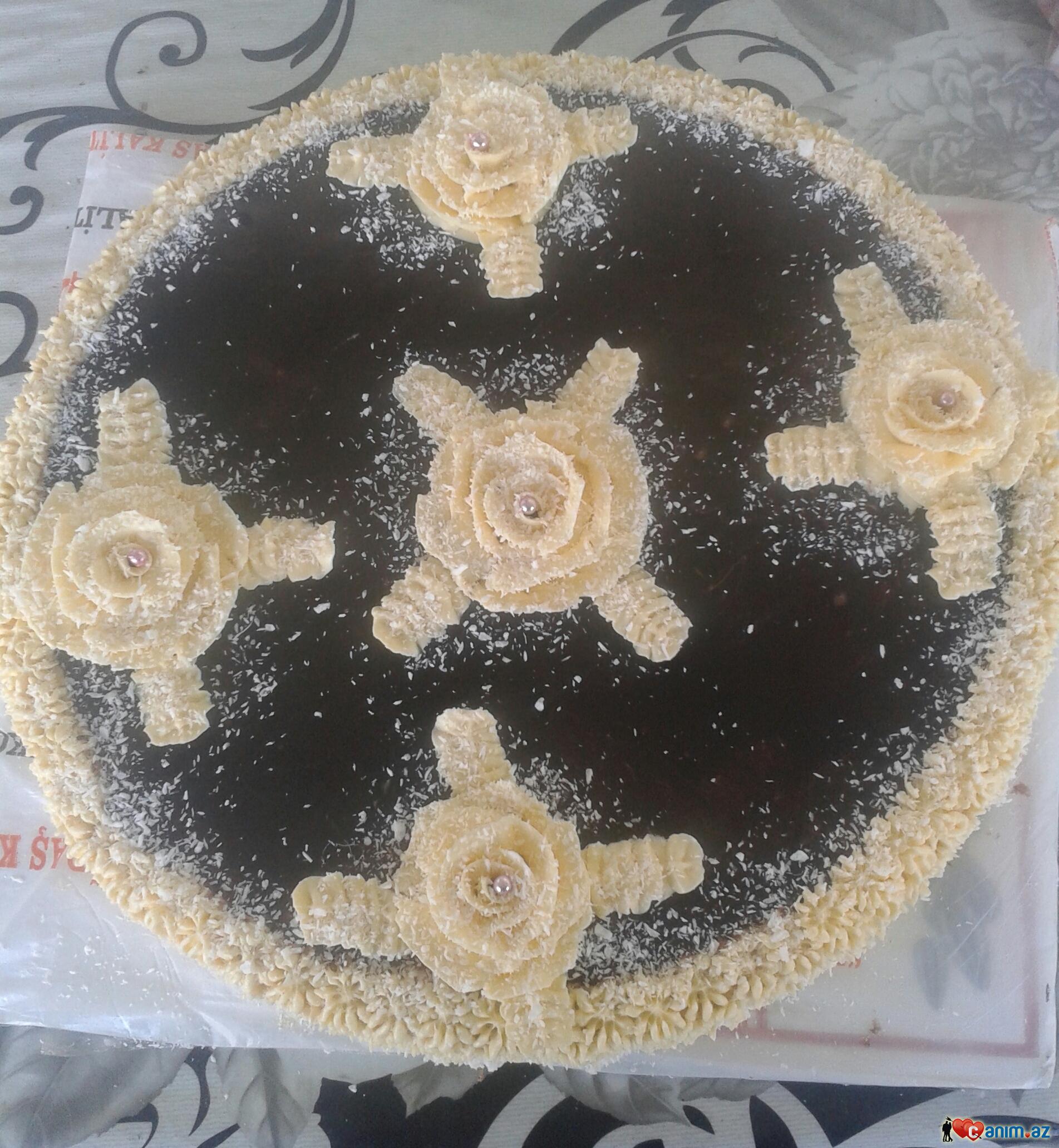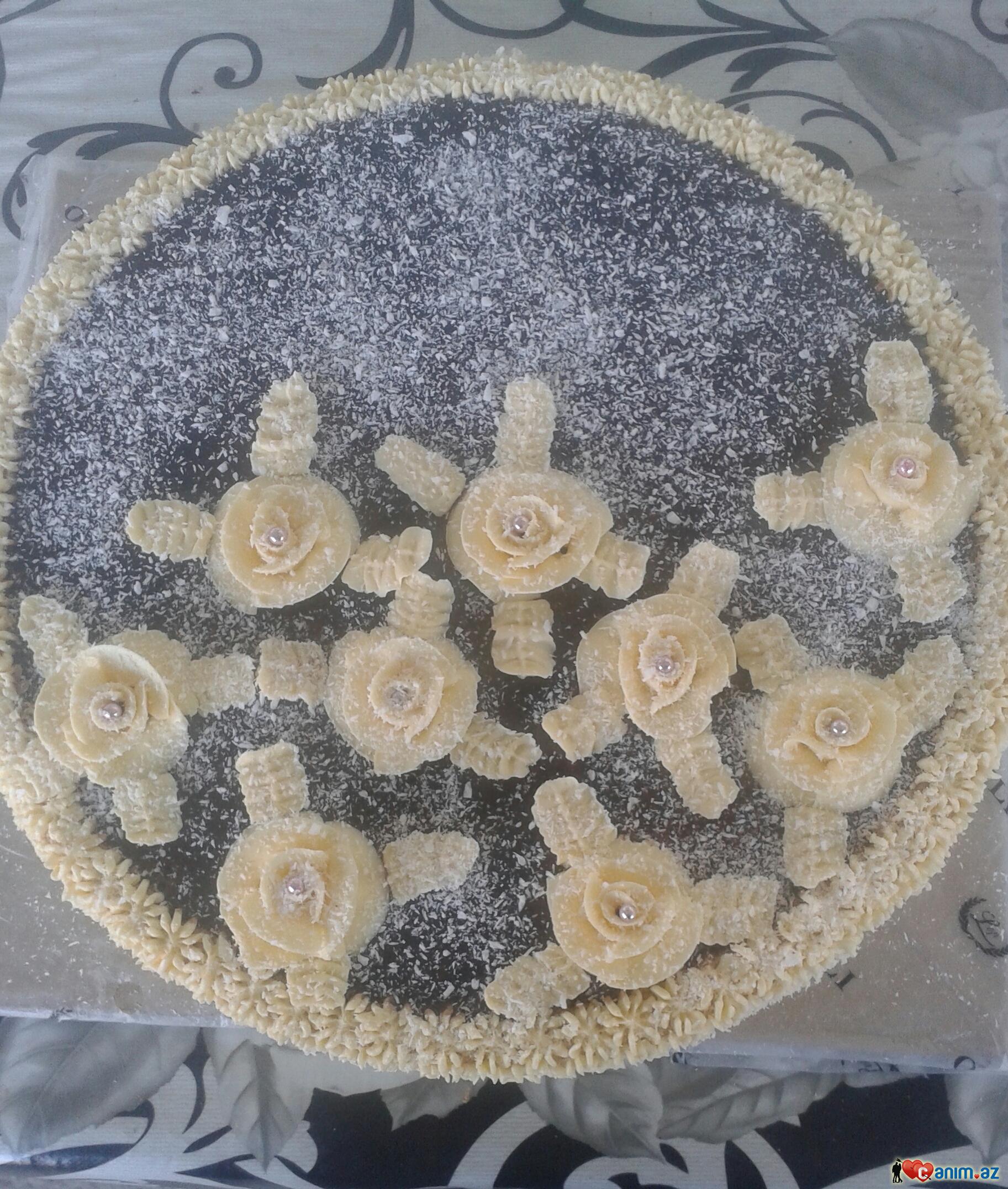 _K_O_T_İ_K_ (14.01.2016/16:43)Eksine krem birce üstündeki gullerdi :)üstü sokolad,kokos arası banan, qoz ve saftali siresi :)