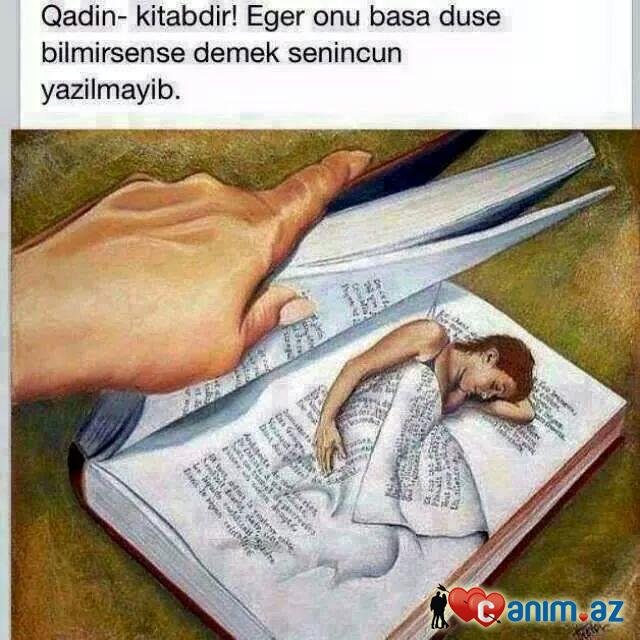 Qadin kitab kimidi...oxuyub bawa duwmedinse demeli senin ucun yazilmayib