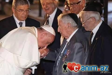 Roma Papasi Fransuz 2014 cu ikde Israilin Yerusalim weherinde Nasist Almaniyasi terefinden qetle yetirilmiw 6 milyon Yehudilerin Anim Merasiminde Dunyanin En Varli Adamlari Hansiki Dunyani idare edirler (cox hissesin) Devid Rokfeller,Henri Kisendjer ve Con Rotwildin Ellerin Opur.Buda sizin Roma Papaviz.