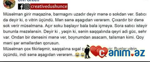 (Ps: aranızdan birinin oxu zalındakı lətifəsini oxuyanda yadıma düşdü. Ora yazdım. Düşündüm copy past edib bura da atım)