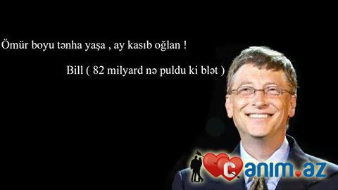 Eshq olsun kasib ancaq avare oglannara yobana 82 milyard ne pulduki naxuy Bill Qeytsin qizil herflerle Dolche Gabanna yazilmish tursiyi blyaaaaaa)))
