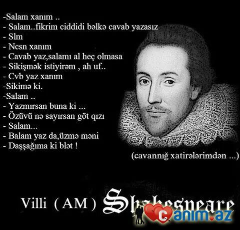 Uilyam Shekspirde dile geldi naxuy)))