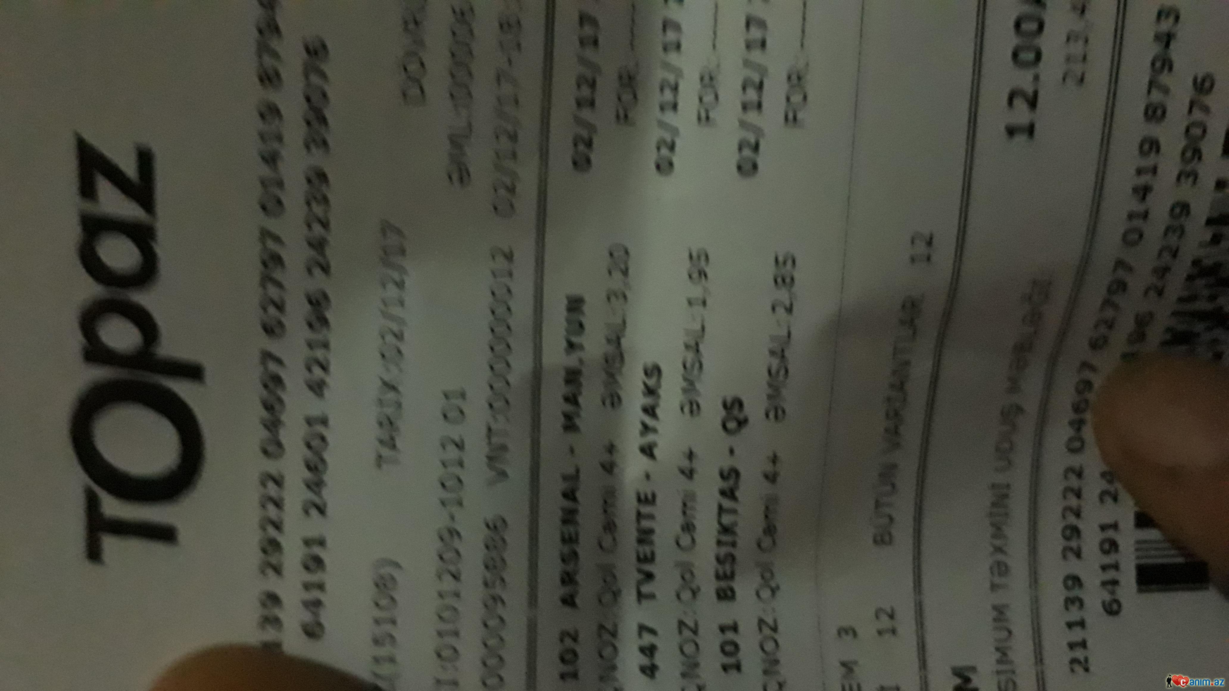 ПользоватеЛ_Х (05.12.2017/12:30)Gül kimi kuponum vardı ayaks 5+ arsenal 4+ beşiktaş 101 azdırdılar məni topazda.kafcentdəki xırdəyə qədər