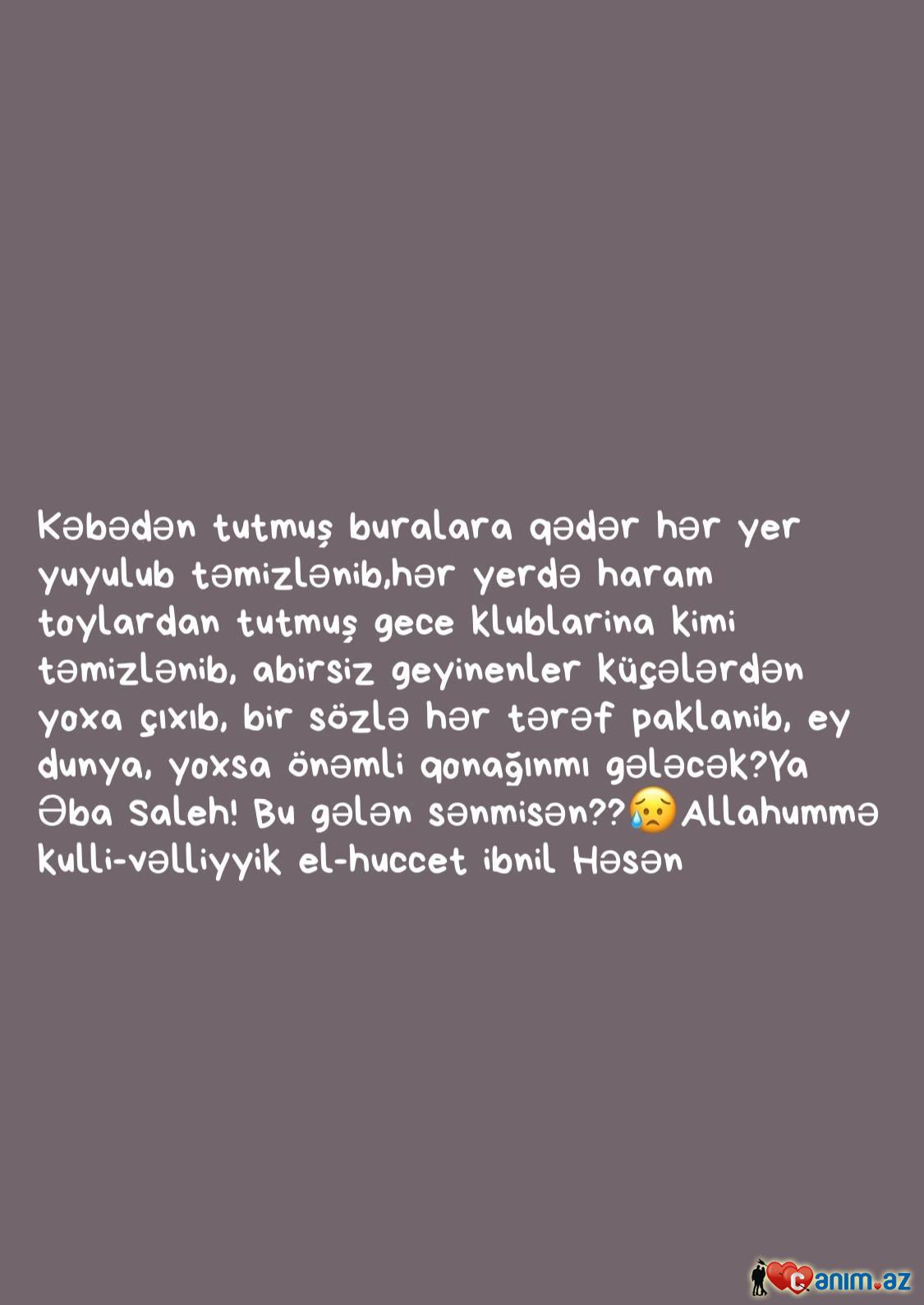 Men ßir qeriß insanam.Ne taxtIm var,Ne tacIm.Tut elimden ALLAHIM Tek Sana Möhtacım. |