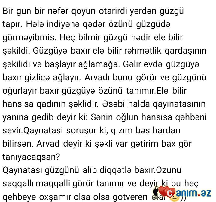Yaqun ki ,yene baxmamiś otub keceram,gormeram..